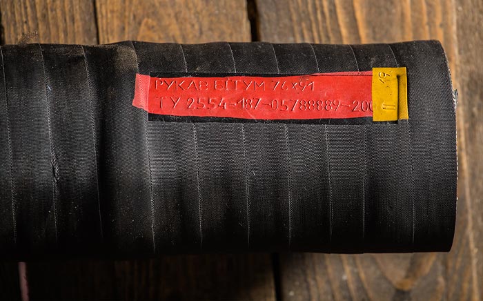 Рукава резиновые для битума (битумный шланг или рукав для мазута) применяют как гибкий трубопровод для транспортировки расплавленного битума в необходимое место. Чаще всего этим местом является дорожное покрытие. Основными пользователями данного изделия являются строительные, нефтяные и дорожные компании. Им оснащается специальная техника для укладки асфальта, битумные установки и другое оборудование. Такой шланг состоит из следующих слоев: